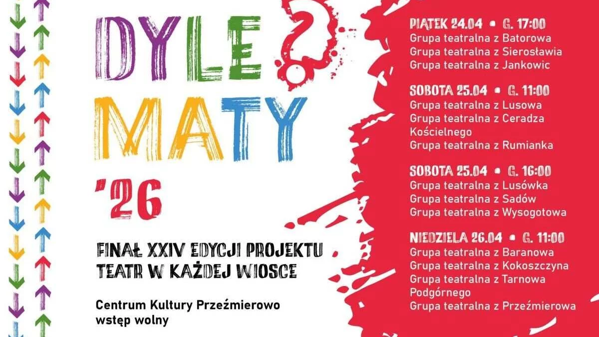Tegoroczna edycja „Teatru w Każdej Wiosce” koncentruje się wokół tematu trudnych wyborów i życiowych rozterek. Hasło „Dylematy” to zaproszenie do zastanowienia się nad pytaniami, które towarzyszą ludziom niezależnie od wieku: